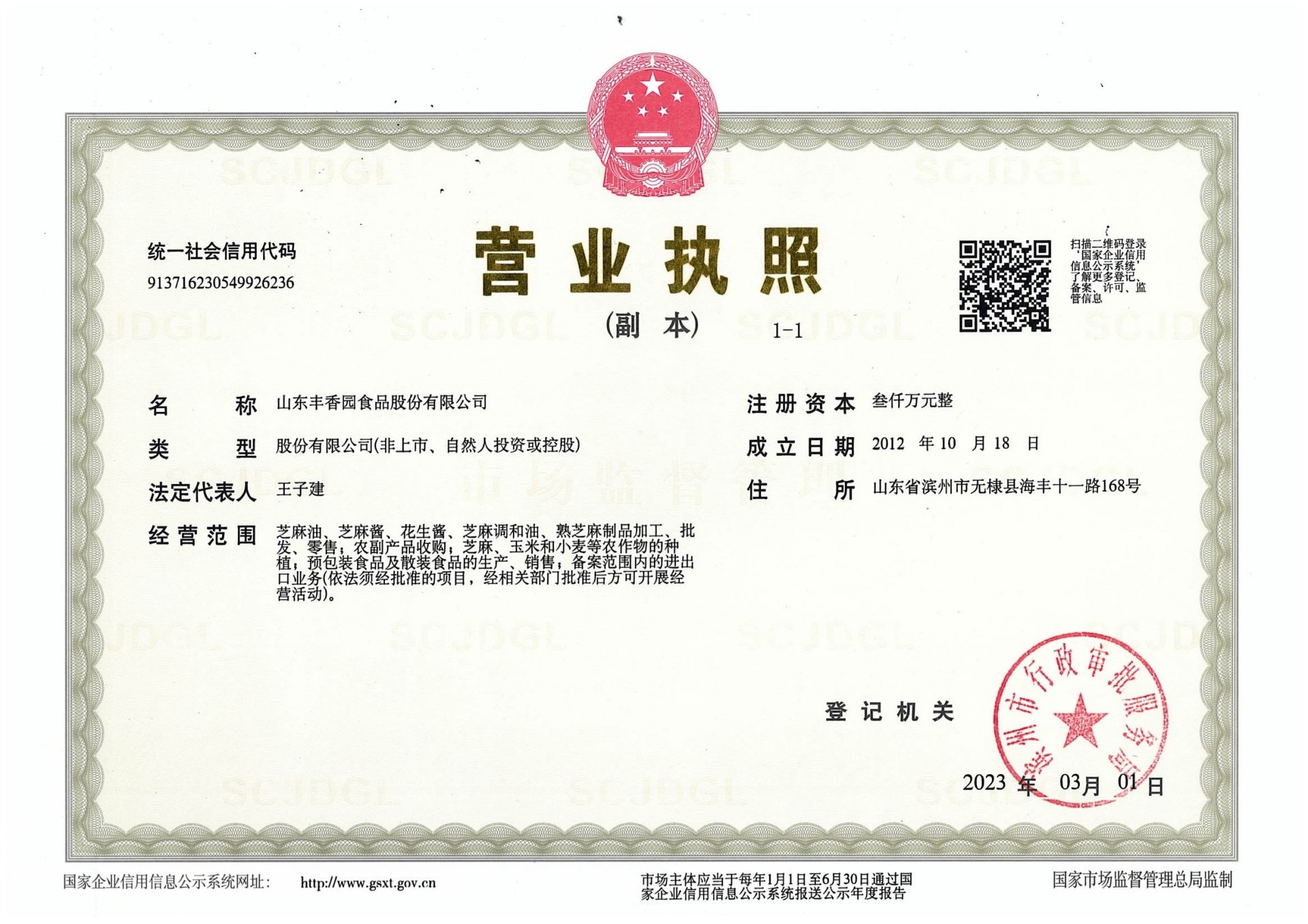 山東豐香園食品股份有限公司位于無棣縣西城工業(yè)園,成立于2012年,注冊(cè)資本3000萬元,員工60多人,年銷售收入8000多萬元,是“國家高新技術(shù)企業(yè)”、“中國好糧油”示范企業(yè)、“食安山東”示范生產(chǎn)加工企業(yè),公司集綠色、有機(jī)芝麻食品標(biāo)準(zhǔn)化、生產(chǎn)加工、研發(fā)、出口銷售為一體的山東省農(nóng)業(yè)產(chǎn)業(yè)化“重點(diǎn)龍頭企業(yè)”。        公司獲得HACCP國際質(zhì)量體系認(rèn)證、ISO9001:2015質(zhì)量管理體系認(rèn)證,產(chǎn)品獲得美國FDA認(rèn)證、美國、歐盟有機(jī)食品認(rèn)證、英國BRC體系認(rèn)證、A級(jí)綠色食品認(rèn)證、GB國標(biāo)有機(jī)食品認(rèn)證。        公司主要產(chǎn)品有芝麻油、芝麻醬、花生醬、芝麻粉和烘焙芝麻、兒童芝麻食品系列等六大種類上百個(gè)品種,產(chǎn)品出口美國、日本、韓國、新加坡、俄羅斯、澳大利亞、美國、等30多個(gè)國家。2018-2019年連續(xù)兩年芝麻食品出口量排名山東省第三位、濱州市第一位。        山東豐香園食品股份有限公司是國家級(jí)高新技術(shù)企業(yè),建有省級(jí)“一企一技術(shù)”研發(fā)中心、市級(jí)企業(yè)技術(shù)中心和市級(jí)工程實(shí)驗(yàn)室、市級(jí)工程技術(shù)中心等多個(gè)創(chuàng)新平臺(tái),擁有發(fā)明專利2項(xiàng),實(shí)用新型專利21項(xiàng),先后獲得省級(jí)“專精特新”中小企業(yè)、市級(jí)農(nóng)業(yè)產(chǎn)業(yè)化聯(lián)合體、科技型中小企業(yè)、濱州市級(jí)瞪羚企業(yè)、市級(jí)“一企一技術(shù)”創(chuàng)新企業(yè)和濱州市新興產(chǎn)業(yè)“白名單”企業(yè)等榮譽(yù)稱號(hào)。